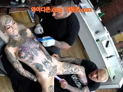 문신을 받는 동안 딜도질 해주는 남친